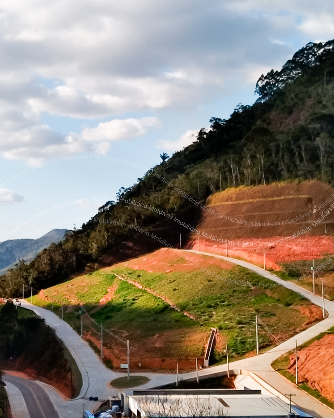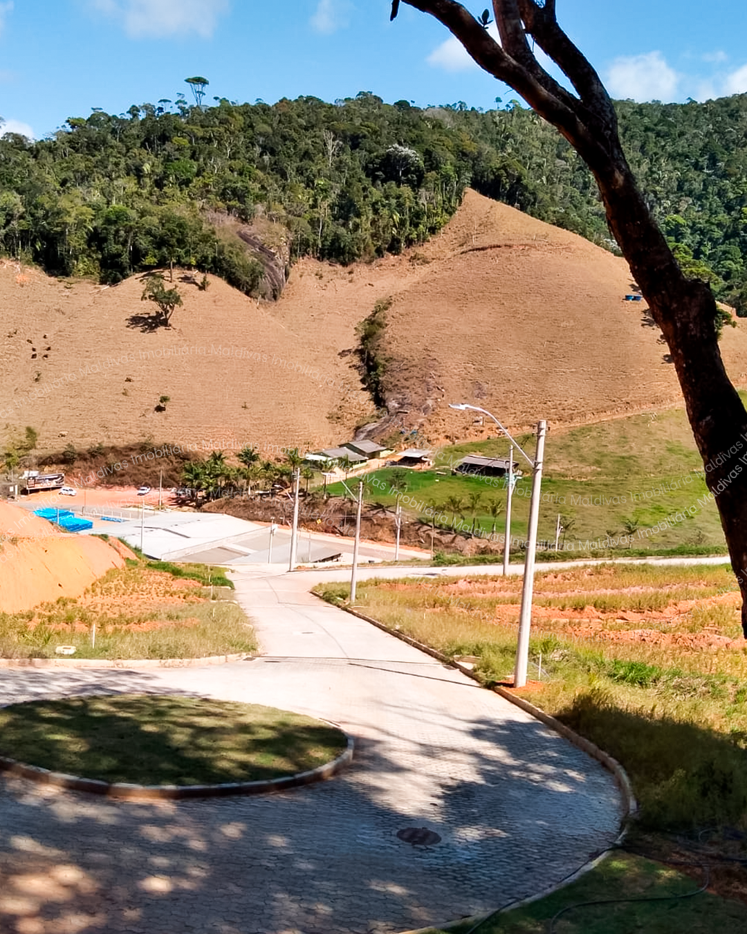 Sobre o nosso loteamento, é um loteamento urbano, com toda a infraestrutura padrão, como água e esgoto da Cesan, iluminação pública, ruas pavimentadas, escrituras individuais… Loteamento aprovado desde 2019. Estamos a exatamente 1,3 km do centro de Santa Teresa